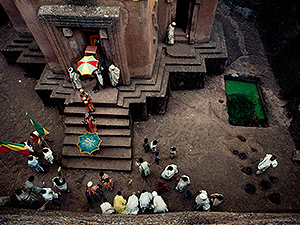 Check into your hotel and have lunch. In the afternoon discover the city of Lalibela/ancient city of Roha; civilization of the past is still alive in the form of strange and beautiful monuments and ruins. The 11thc rock hewn churches of Lalibela reveal a marvelous and skillful architectural knowledge of the past. These incredible edifices remain places of living worship to this day and no one visiting here can fail to be stunned and awed by the remarkable human achievements that the churches represent. This day you will visit the northern cluster starting from Bet Medhane Alem, one of the largest monolithic rock-hewn churches. Bet Maryam, is thought to have been the first church built in Lalibela and features elaborate carvings. After spending the afternoon among the priests and pilgrims, have dinner and stay at Mountain view Hotel/other